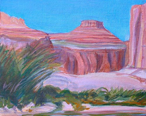 Colorado River with Butte, Day 3, Grand Canyon Series 9 x 12 Acrylic on Canvas Panel Gwen is re-creating this painting "For Sale"