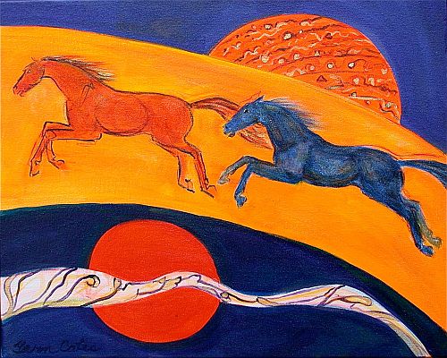 Esoteric Moon, Year of the Horse Series 16 x 20 Acrylic Pen and Paint on Canvas Prices upon request.